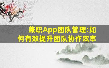 以下是关于“兼职 App 团队管理中有效提升团队协作效率”的一些建议: