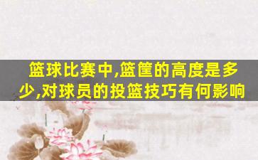 对出手角度的影响:较高的篮筐要求球员掌握合适的出手角度,以确保球能够顺利进入篮筐。如果篮筐高度变化,球员需要重新调整出手角度的感觉和把握。
