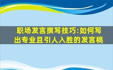 以下是关于“职场发言撰写技巧:如何写出专业且引人入胜的发言稿”的一些建议: