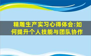 以下是一篇关于“精雕生产实习心得体会:如何提升个人技能与团队协作”的文章: