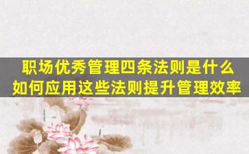 以下是职场优秀管理的四条法则及应用建议: