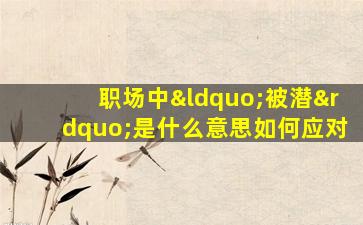 “职场中‘被潜’”通常指的是在职场中遭遇了不公平的、隐蔽的、违背正常规则和道德的对待,往往涉及到性暗示、性要求或其他不正当的交易条件等。