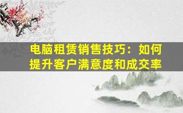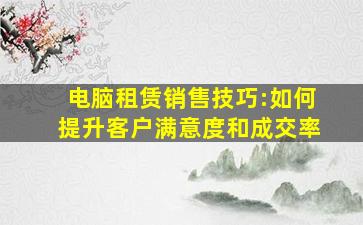 以下是一些关于电脑租赁销售的技巧,可以帮助提升客户满意度和成交率: