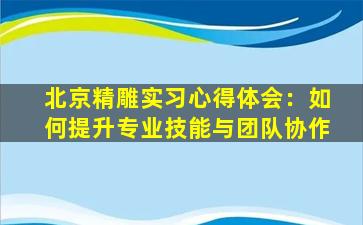 以下是一篇关于“北京精雕实习心得体会:如何提升专业技能与团队协作”的示例文章,你可以根据实际情况进行修改和调整。