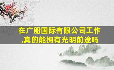 在广船国际有限公司工作是否能拥有光明前途,取决于多个因素。