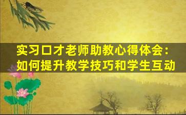 以下是一篇关于“实习口才老师助教心得体会:如何提升教学技巧和学生互动”的文章: