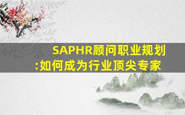以下是一份关于 SAP HR 顾问职业规划以成为行业顶尖专家的建议: